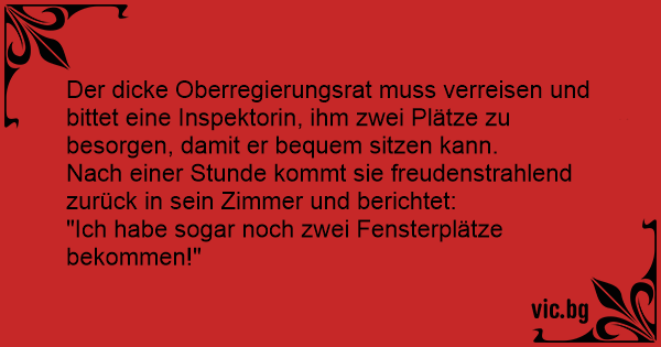 Der dicke Oberregierungsrat muss verreisen und bittet eine Inspektorin, ihm zwei Plätze zu besorgen, damit er bequem sitzen kann.