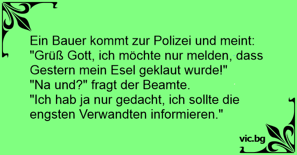 "Grüß Gott, ich möchte nur melden, dass Gestern mein Esel geklaut wurde!"
