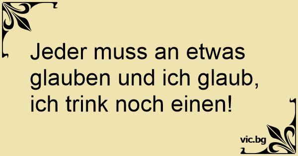Jeder muss an etwas glauben und ich glaub, ich trink noch einen!