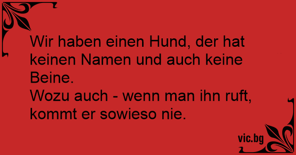 Hoe noem je een hond zonder poten? Het maakt niet uit hoe je hem noemt, als je hem roept, komt hij toch niet!
