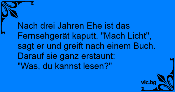 Nach drei Jahren Ehe ist das Fernsehgerät kaputt. "Mach Licht", sagt er und greift nach einem Buch.