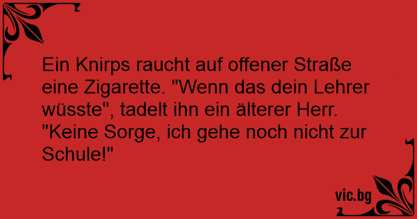 Ein Knirps raucht auf offener Straße eine Zigarette. "Wenn das dein Lehrer wüsste", tadelt ihn ein älterer Herr.