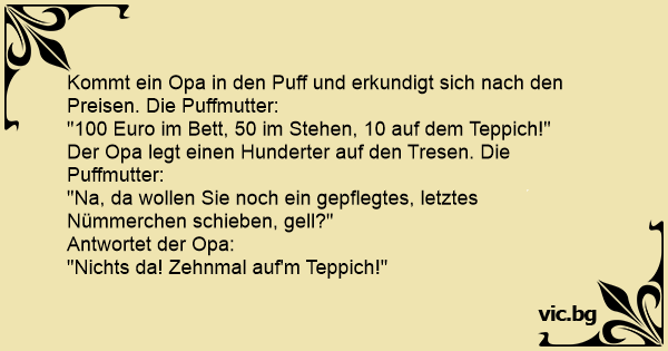 Kommt ein Opa in den Рuff und erkundigt sich nach den Preisen. Die Puffmutter: