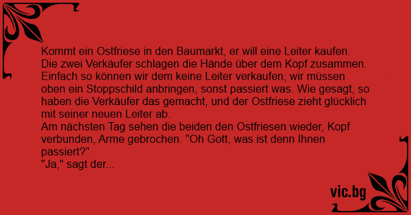 Kommt ein Ostfriese in den Baumarkt, er will eine Leiter kaufen.