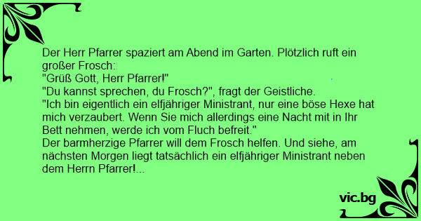 Der Herr Pfarrer spaziert am Abend im Garten. Plötzlich ruft ein großer Frosch: