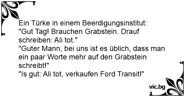 "Gut Tag! Brauchen Grabstein. Drauf schreiben: Ali tot."