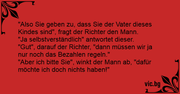 "Gut", darauf der Richter, "dann müssen wir ja nur noch das Bezahlen regeln."