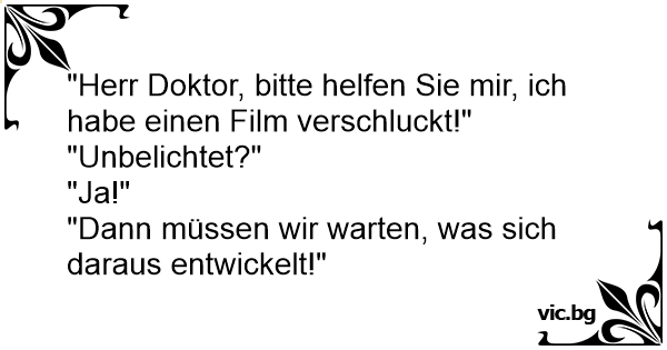 "Herr Doktor, bitte helfen Sie mir, ich habe einen Film verschluckt!"