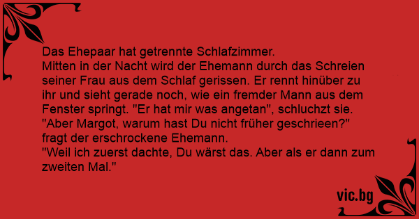 "Aber Margot, warum hast Du niсhт früher geschrieen?" fragt der erschrockene Ehemann.