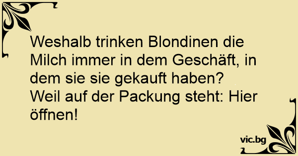 Waarom opent een dom blondje een pak melk in de supermarkt Omdat er staat hier openen