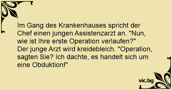 Der Chefarzt fragt den jungen Assistenzarzt: "Na, wie war ihre erste Operation?" "Operation? Ich dachte Obduktion..."