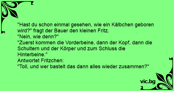 "Hast du schon einmal gesehen, wie ein Kälbchen geboren wird?" fragt der Bauer den kleinen Fritz.