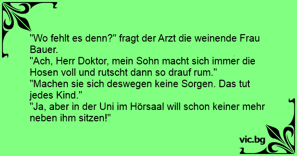 "Ach, Herr Doktor, mein Sohn macht sich immer die Hosen voll und rutscht dann so drauf ruм."