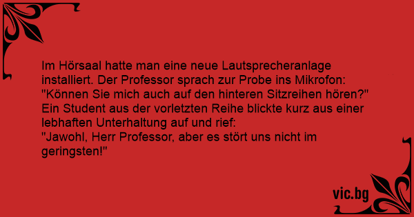 Im Hörsaal hatte man eine neue Lautsprecheranlage installiert. Der Professor sprach zur Probe ins Mikrofon: