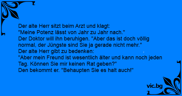 Der alte Herr sitzt beim Arzt und klagt: