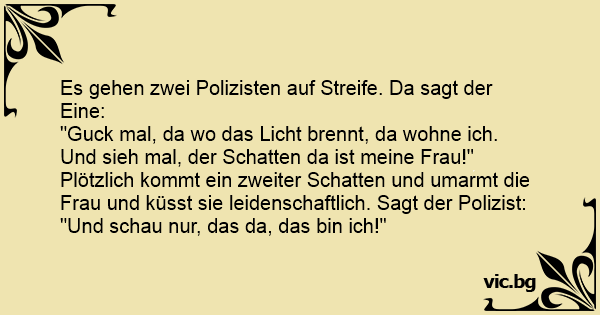 Es gehen zwei Polizisten auf Streife. Da sagt der Eine: