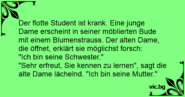 Der flotte Student ist krank. Eine junge Dame erscheint in seiner möblierten Bude mit einem Blumenstrauss. Der alten Dame, die öffnet, erklärt sie möglichst forsch: