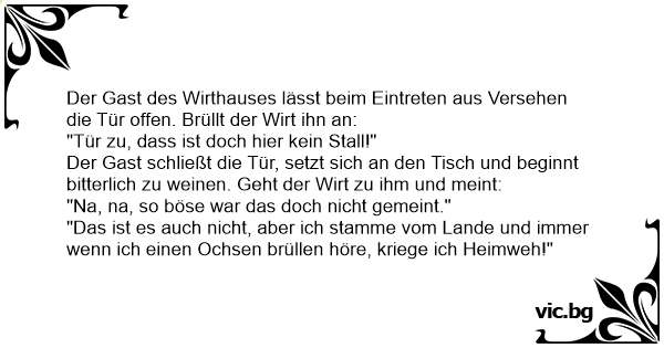Der Gast schließt die Tür, setzt sich an den Tisch und beginnt bitterlich zu weinen. Geht der Wirt zu ihm und meint: