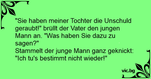 "Sie haben meiner Tochter die Unschuld geraubt!" brüllt der Vater den jungen Mann an. "Was haben Sie dazu zu sagen?"
