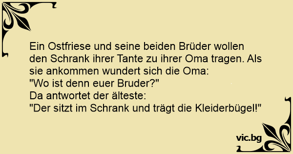 Ein Ostfriese und seine beiden Brüder wollen den Schrank ihrer Tante zu ihrer Oma tragen. Als sie ankommen wundert sich die Oma: