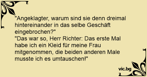 "Angeklagter, warum sind sie denn dreimal hintereinander in das selbe Geschäft eingebrochen?"