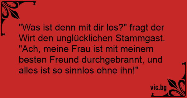 "Ach, meine Frau ist mit meinem besten Freund durchgebrannt, und alles ist so sinnlos ohne ihn!"