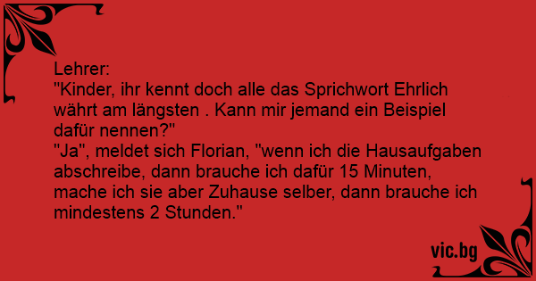 "Kinder, ihr kennt doch alle das Sprichwort Ehrlich währt am längsten . Kann mir jemand ein Beispiel dafür nennen?"