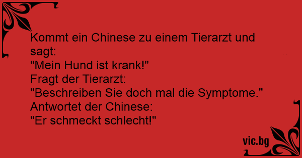 Kommt ein Chinese zu einem Tierarzt und sagt:
