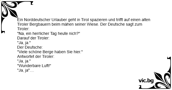 Ein Norddeutscher Urlauber geht in Tirol spazieren und trifft auf einen alten Tiroler Bergbauern beim mähen seiner Wiese. Der Deutsche sagt zum Tiroler: