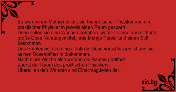 Es werden ein Mathematiker, ein theoretischer Physiker und ein praktischer Phyisker in jeweils einen Raum gesperrt.