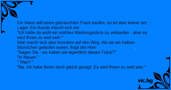 "Ich hätte da wohl ein solches Kleidungsstück zu verkaufen - aber es wird Ihnen zu weit sein."