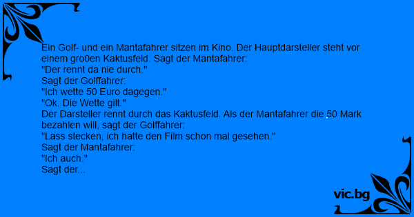 Der Darsteller rennt durch das Kaktusfeld. Als der Mantafahrer die 50 Mark bezahlen will, sagt der Golffahrer: