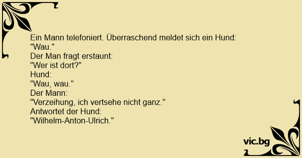 Ein Mann telefoniert. Überraschend meldet sich ein Hund: