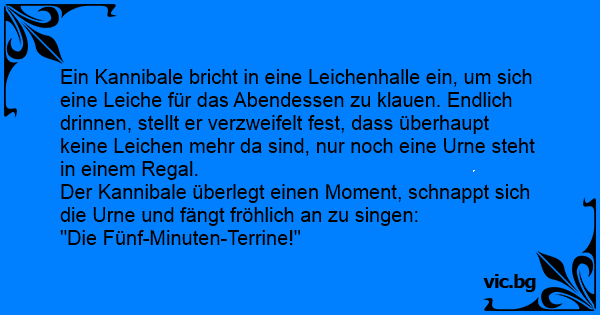 Der Kannibale überlegt einen Moment, schnappt sich die Urne und fängt fröhlich an zu singen: