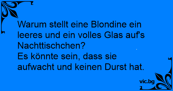 Warum stellt eine Blondine ein leeres und ein volles Glas auf's Nachttischchen?