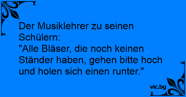 "Alle Bläser, die noch keinen Ständer haben, gehen bitte hoch und holen sich einen runter."