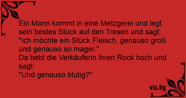 Ein Mann kommt in eine Metzgerei und legt sein bestes Stück auf den Tresen und sagt: