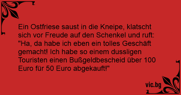 "Ha, da habe ich eben ein tolles Geschäft gemacht! Ich habe so einem dussligen Touristen einen Bußgeldbescheid über 100 Euro für 50 Euro abgekauft!"