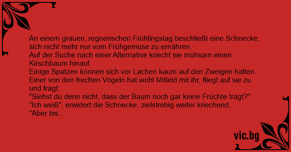 "Ich weiß", erwidert die Schnecke, zielstrebig weiter kriechend,