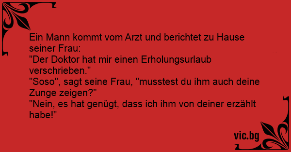 "Soso", sagt seine Frau, "musstest du ihm auch deine Zunge zeigen?"