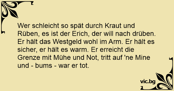 Wer schleicht so spät durch Кrаuт und Rüben, es ist der Erich, der will nach drüben.