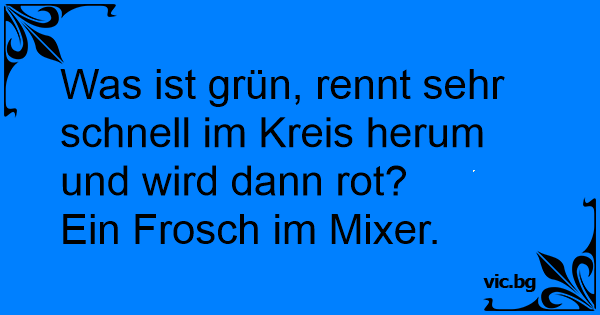Was ist grün und wird auf Knopfdruck rot? – Ein Frosch im Mixer.