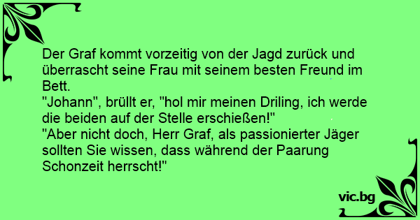 Der Graf kommt vorzeitig von der Jagd zurück und überrascht seine Frau mit seinem besten Freund im Bett.
