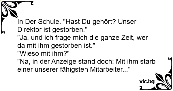 In Der Schule. "Hast Du gehört? Unser Direktor ist gestorben."