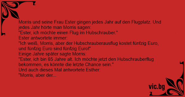 Morris und seine Frau Ester gingen jedes Jahr auf den Flugplatz. Und jedes Jahr hörte man Morris sagen: