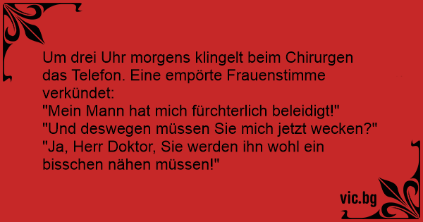Um drei Uhr morgens klingelt beim Chirurgen das Telefon. Eine empörte Frauenstimme verkündet: