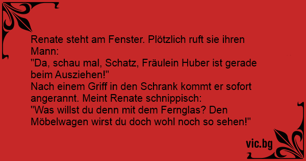 "Was willst du denn mit dem Fernglas? Den Möbelwagen wirst du doch wohl noch so sehen!"