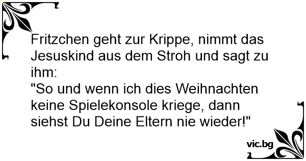 Fritzchen geht zur Krippe, nimmt das Jesuskind aus dem Stroh und sagt zu ihm: