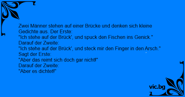 Zwei Männer stehen auf einer Brücke und denken sich kleine Gedichte aus. Der Erste: