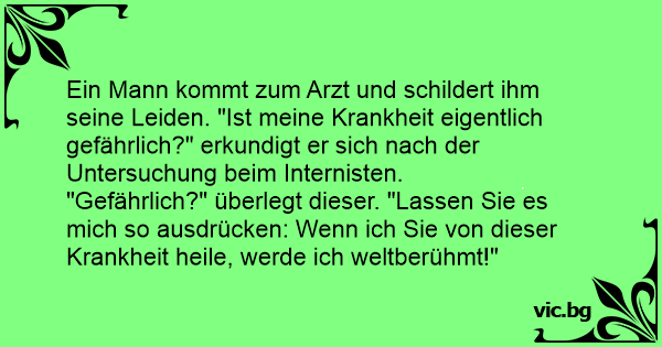 Ein Mann kommt zum Arzt und schildert ihm seine Leiden. "Ist meine Krankheit eigentlich gefährlich?" erkundigt er sich nach der Untersuchung beim Internisten.